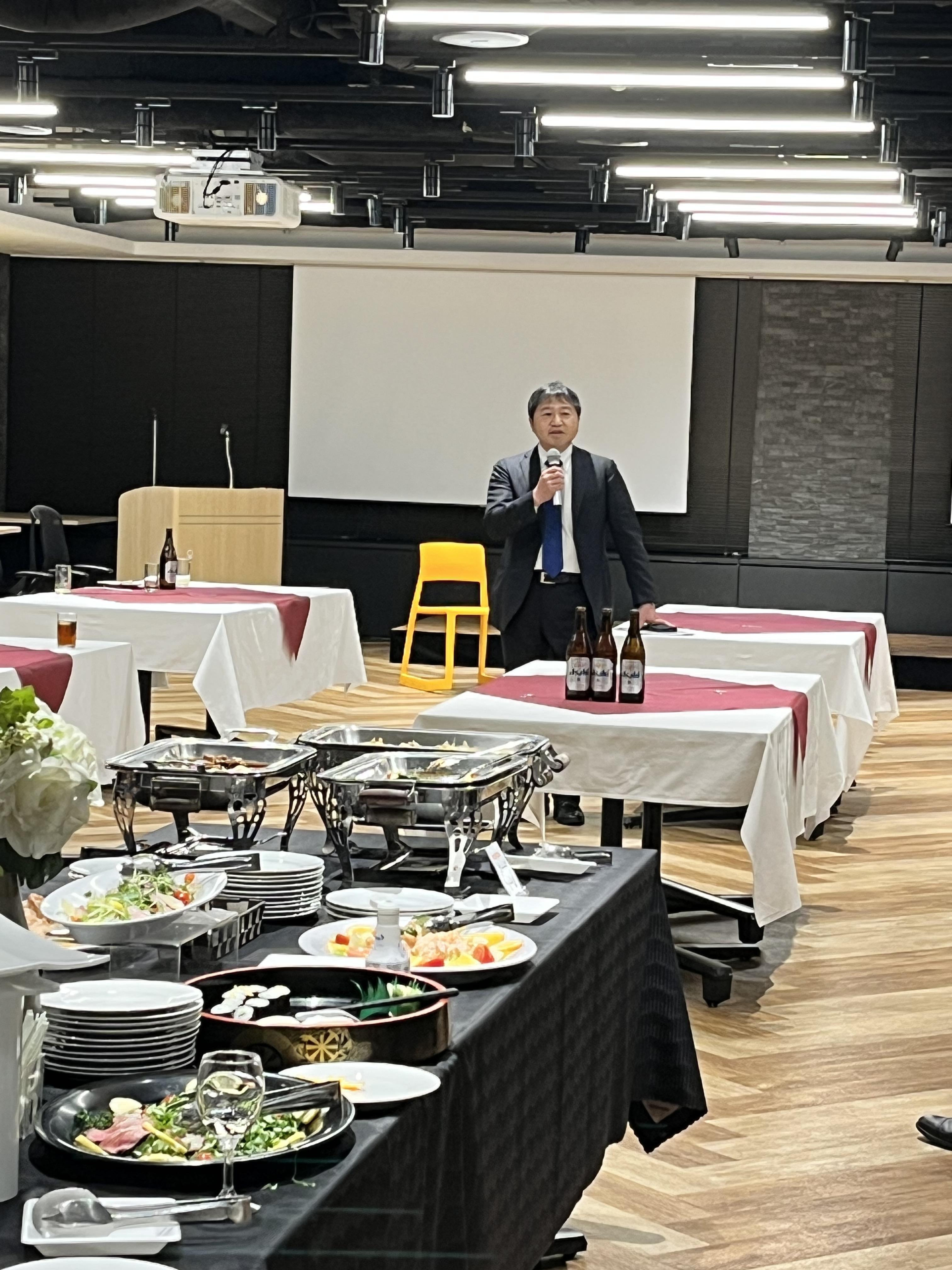 The reception party was held with a celebratory toast, followed by light refreshments.